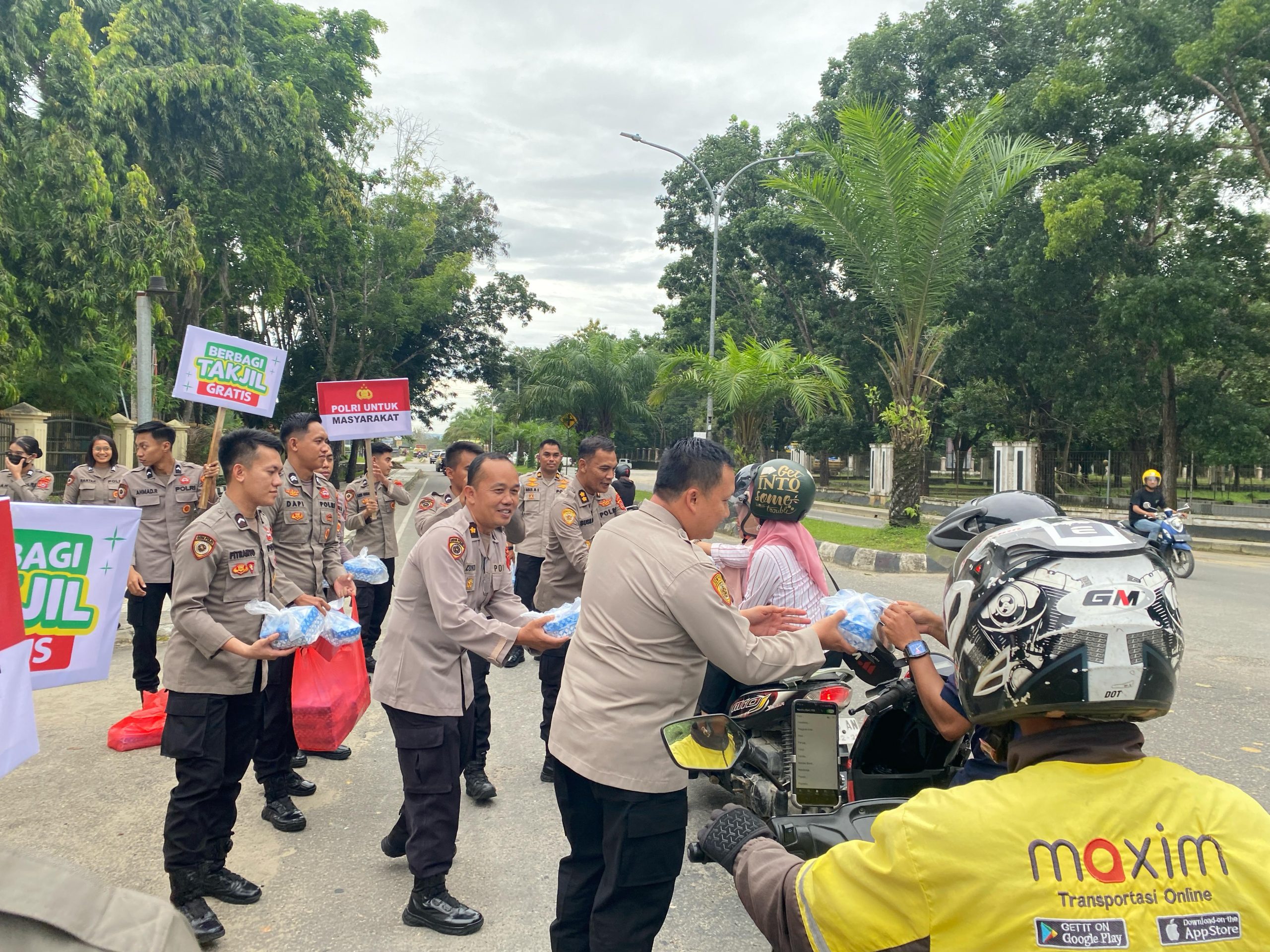 Para personel Biro SDM Polda Sultra tampak antusias dalam membagikan takjil kepada masyarakat.