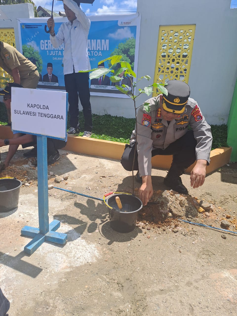 Kegiatan ini dilaksanakan pada Selasa, 22 April 2025 pukul 10.00 WITA di halaman Kantor Kementerian Agama Provinsi Sulawesi Tenggara. Mewakili Kapolda, Direktur Pembinaan Masyarakat (Dirbinmas) Polda Sultra, Kombes Pol Antonius Danang, S.H., S.I.K., M.M., hadir secara langsung dalam kegiatan tersebut sebagai bentuk dukungan terhadap program pelestarian lingkungan dan penguatan nilai-nilai keberlanjutan yang digagas oleh pemerintah.
