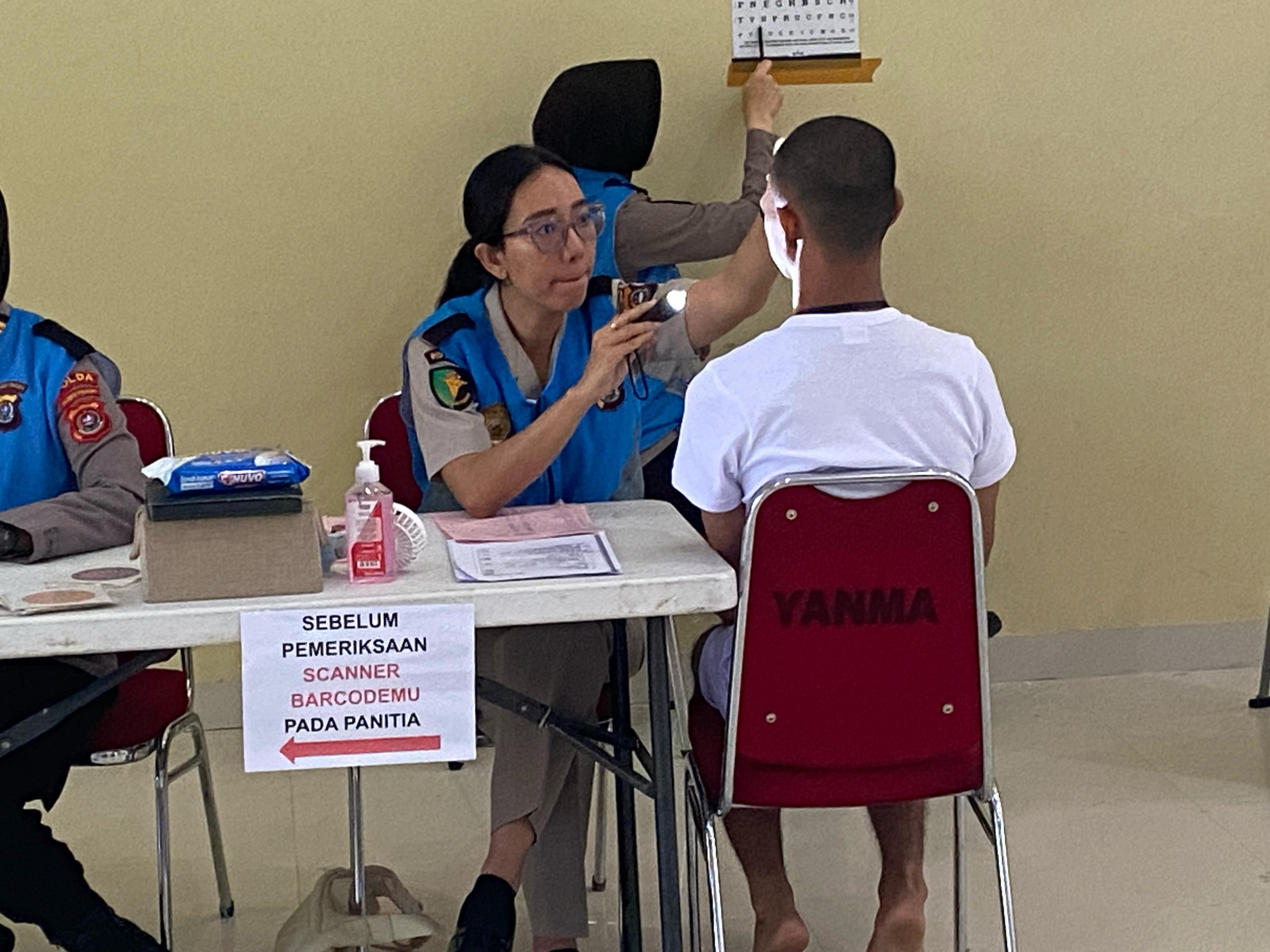 Peserta seleksi dihadapkan pada enam item pemeriksaan kesehatan, yang meliputi tes pengukuran berat dan tinggi badan, pemeriksaan tekanan darah, kesehatan Telinga, Hidung, dan Tenggorokan (THT), pemeriksaan gigi dan mulut, tes buta warna, serta pemeriksaan fisik. Setiap tes bertujuan untuk memastikan bahwa peserta memenuhi standar kesehatan yang ketat dan siap menjalani tugas berat sebagai aparat penegak hukum.