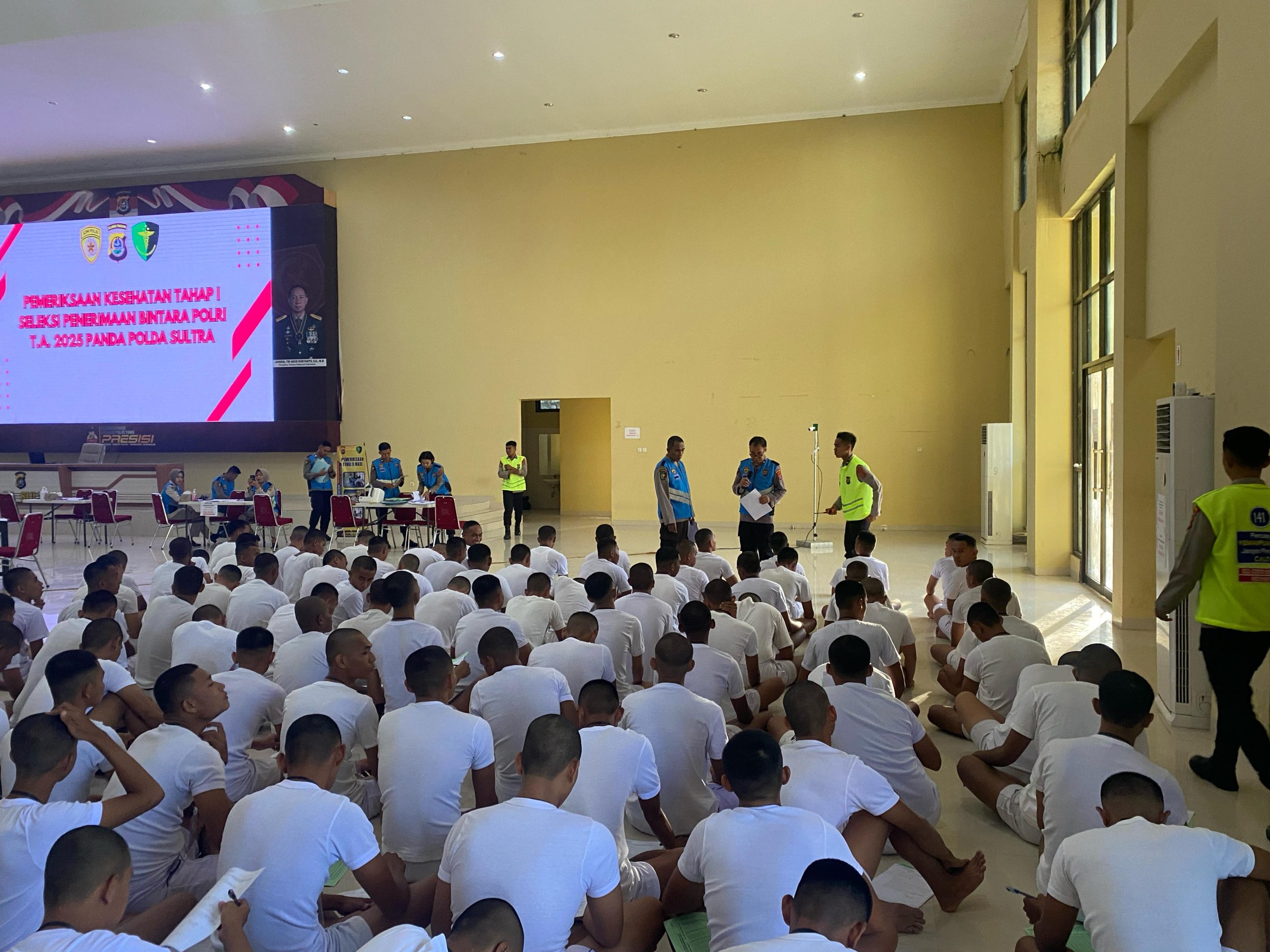 Kendari – Hari ketiga pelaksanaan pemeriksaan kesehatan (Rikkes) tahap pertama dalam seleksi penerimaan Bintara Polri T.A 2025 Panda Polda Sultra menarik perhatian, dengan 220 peserta yang mengikuti serangkaian tes medis di Aula Dhalas Polda Sultra pada Jumat (21/3/2025). Kegiatan ini menekankan pada transparansi dan objektivitas dalam proses seleksi, melalui penerapan teknologi sistem barcode yang menjadi bagian dari komitmen Polda Sultra untuk menghadirkan seleksi yang bersih, transparan, akuntabel, dan humanis (BETAH).