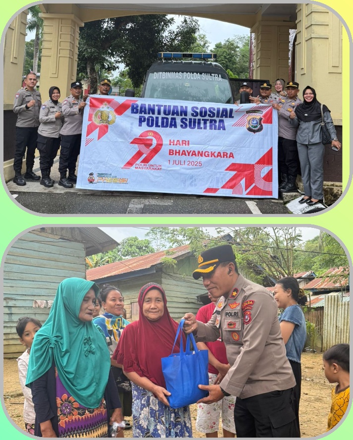 Kendari, 26 Juni 2025 – Dalam rangka menyambut Hari Bhayangkara ke-79, Direktorat Pembinaan Masyarakat (Ditbinmas) Polda Sulawesi Tenggara menggelar kegiatan bakti sosial (bansos) dengan membagikan 100 paket sembako kepada masyarakat kurang mampu yang tinggal di sekitar Tempat Pembuangan Akhir (TPA) Puwatu, Kota Kendari, Kamis (26/6).