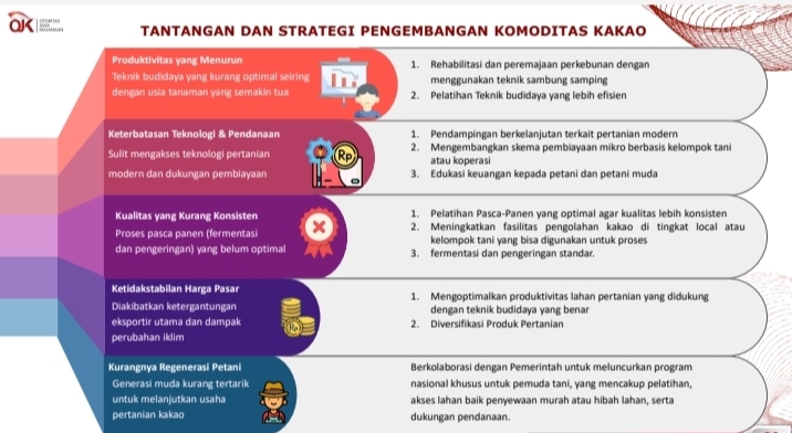 Kendari, Beritainfosultra. Com – Kepala Kantor Otoritas Jasa Keuangan (OJK) Sulawesi Tenggara, Bismin Maulana Nugraha, mengumumkan beberapa program strategis untuk tahun 2025. Program-program ini bertujuan untuk mendukung peningkatan ekonomi daerah Sulawesi Tenggara melalui pengembangan komoditi unggulan seperti kakao, nilam, dan cengkeh.