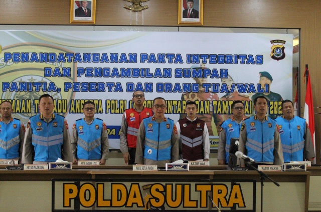 Pakta integritas dan pengambilan sumpah di hadiri PJU Polda Sultra, panitia penerimaan, orang tua/wali serta seluruh casis anggota polri panda Polda Sultra.
