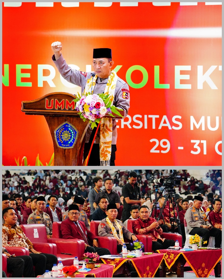 Jatim – Kapolri Jenderal Listyo Sigit Prabowo memberikan sambutan sekaligus menutup acara Tanwir ke-XXXIII IMM di UMM Dome, Malang, Jawa Timur (Jatim), Jumat, 31 Oktober 2025. Dalam kesempatan ini, Sigit mengajak seluruh peserta untuk berkontribusi dalam rangka mendukung program Pemerintah Indonesia.